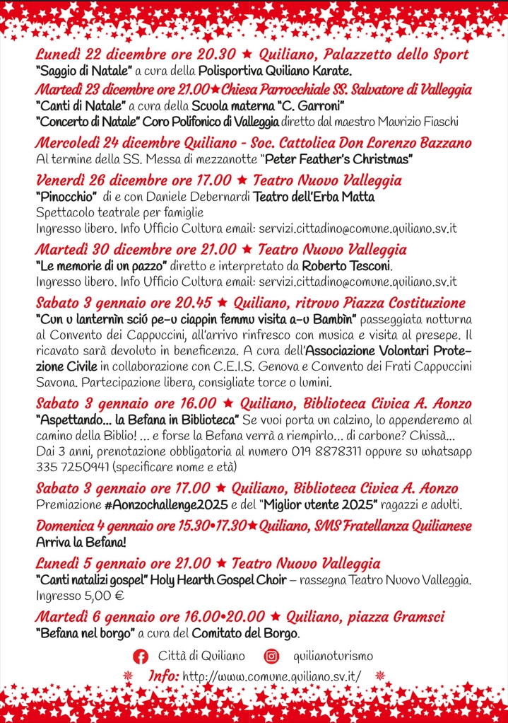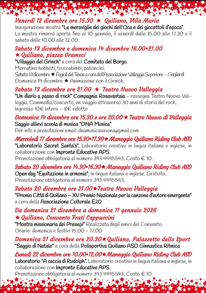 L'Amministrazione comunale, unitamente alle associazioni del territorio, ai commercianti, alla Biblioteca, presenta un ricco programma per accompagnarvi durante le prossime festività natalizie!